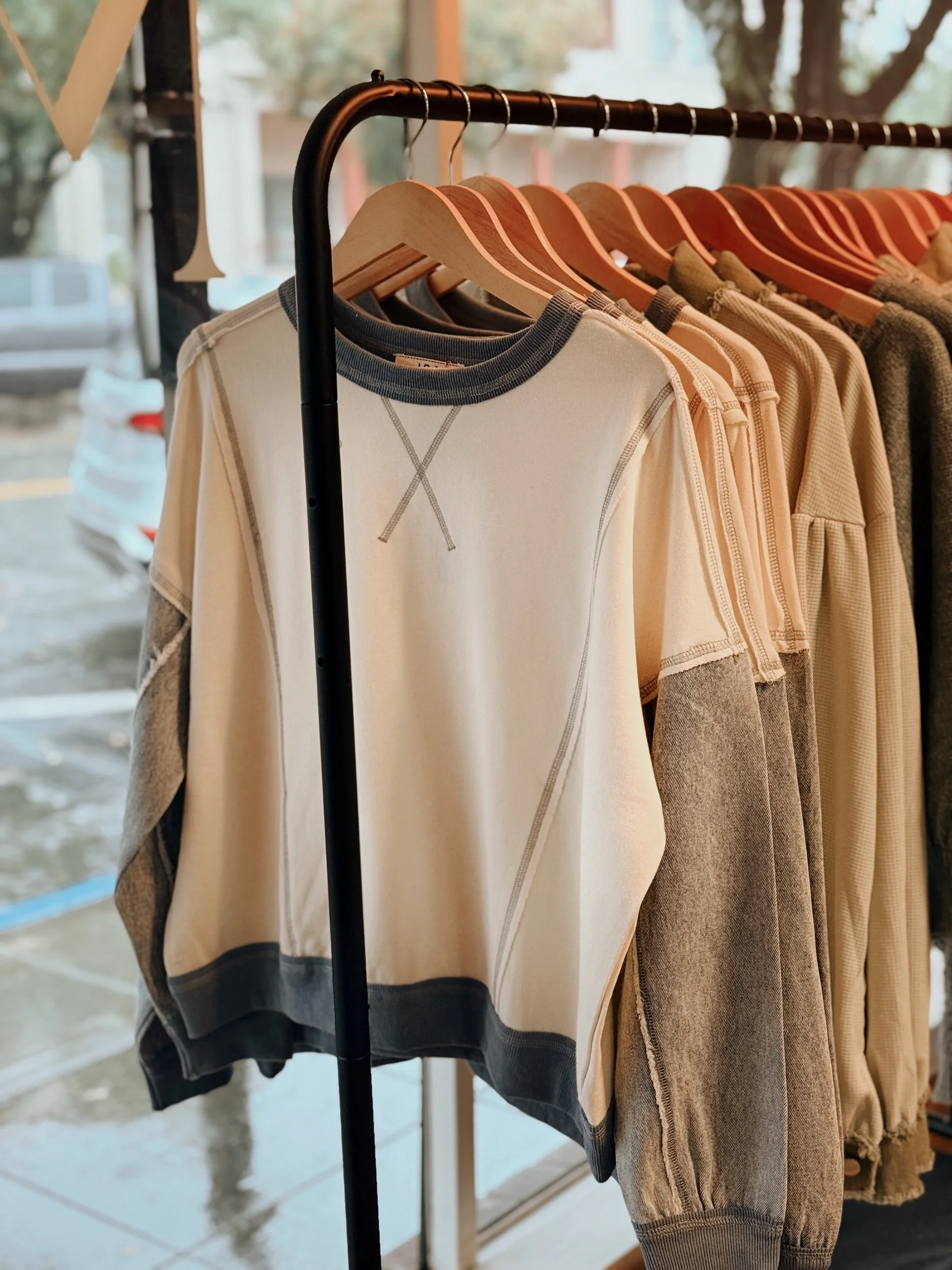 Image 1 of 1 Denim Sleeve Crewneck $51.00 Size: Small Medium Large Quantity: Add To Cart Added! You Might Also Like Cattle Brand Quarter Zip $49.00 Beige Contrast Trim Top $33.00 Camo Crewneck $53.00 Sage Lightweight Shacket $49.00 Apricot Cropped Pullover $39.00